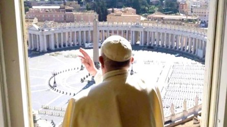 * Papa Francisco da bendición en la Plaza de San Pedro vacía