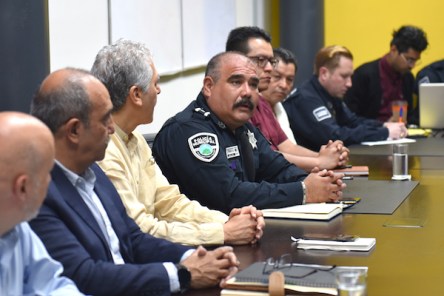 Acompañado por el director de Seguridad Ciudadana y Tránsito Municipal, Francisco Felipe Villa Campa, el Edil dijo que la Policía Municipal respaldará desde el ámbito local todas las medidas que apliquen los gobiernos Estatal y Federal.