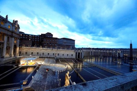 «¿Por qué tenéis miedo? ¿Aún no tenéis fe?». Queridos hermanos y hermanas: Desde este lugar, que narra la fe pétrea de Pedro, esta tarde me gustaría confiarlos a todos al Señor, a través de la intercesión de la Virgen, salud de su pueblo, estrella del mar tempestuoso. Desde esta columnata que abraza a Roma y al mundo, descienda sobre vosotros, como un abrazo consolador, la bendición de Dios.