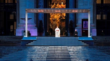 En una plaza desierta, envuelta en silencio y mojada por la lluvia incesante, el papa regaló a los fieles católicos del mundo una ceremonia inédita, una homilía y una bendición posterior que los creyentes católicos tuvieron que seguir a través de los medios de comunicación.