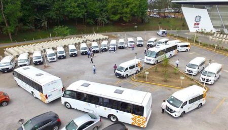 Se trata de 22 camionetas Urvan y tres autobuses que trasladarán a personas en silla de ruedas a través de 40 rutas; fueron adquiridos por 28 millones 950 mil 413.91 pesos, recursos del Fondo para la Accesibilidad en el Transporte Público para las Personas con Discapacidad (FORTADIS) 2019.