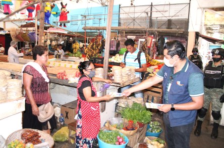 Aquí, personal de las áreas de Promoción de la Salud, Vigilancia Epidemiológica, Riesgos Sanitarios, Atención Médica y Unidades de Salud de primer y segundo nivel de atención, por medio de perifoneo y colocación de carteles, dan a conocer la importancia de aplicar las medidas emitidas por las autoridades sanitarias, evitando la propagación del COVID-19 y otras enfermedades respiratorias.