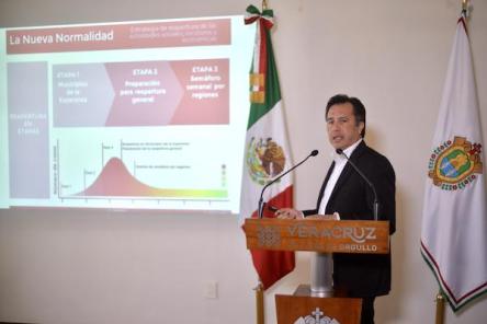 El mandatario detalló que Veracruz apenas está entrando al punto álgido de la epidemia, por lo que el retorno a las actividades sociales, escolares y económicas será más lento que en otros estados, aparte de considerar 8 factores: avance de la transmisión comunitaria, comportamiento de la curva, conectividad intermunicipal, tamaño de la población, densidad poblacional, capacidad resolutiva en salud, edad poblacional y prevalencia de enfermedades crónicas.