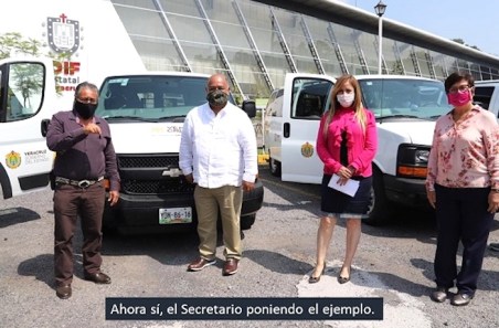 Acudió a las instalaciones del DIF-Estatal en Xalapa para entregar unidades adaptadas para personas con alguna discapacidad o para adultos mayores, de municipios de la cuenca del Papaloapan, de donde es originario.