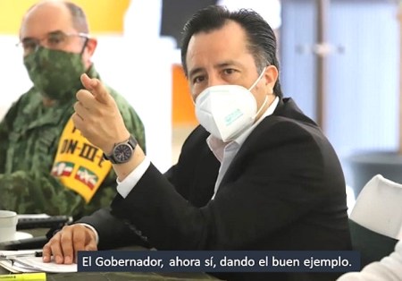 (Ahora sí, y por eso es de destacarse, por fin ayer el gobernador Cuitláhuac García Jiménez apareció con cubreboca y nariz . Fue en la reunión de la Mesa de Coordinación para la Construcción de la Paz, en la 26 Zona Militar de El Lencero. Aceptable.)