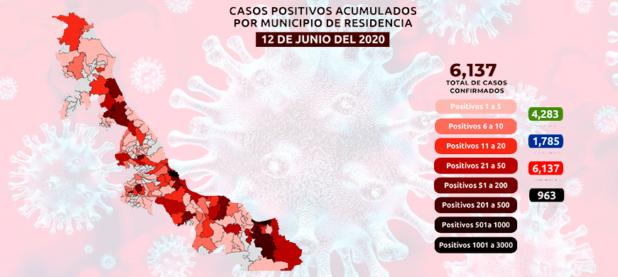 Xalapa, Ver., 12 de junio de 2020. – Dando seguimiento al panorama del coronavirus (COVID-19), la Secretaría de Salud (SS) informa que, al corte de las 19:00 horas, en la entidad han sido estudiados 12 mil 205 casos, de los cuales 4 mil 283 resultaron negativos. Mil 785 sospechosos de 117 municipios continúan en investigación: Veracruz 553, Coatzacoalcos 143, Córdoba 108, Xalapa 90, Boca del … Continúa leyendo En Veracruz, 25 ciudades acumulan la mayor carga de la enfermedad; urgen a población el cumplimiento de las medidas sanitarias