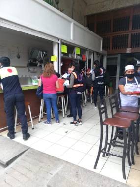 A los comerciantes se les entregaron caretas protectoras, cubrebocas y galones de gel antibacterial y se les recomendó aplicar medidas para proteger la salud de los clientes y trabajadores, como desinfectar las superficies, evitar aglomeraciones y no permitir la entrada a personas que presenten síntomas de Covid-19.
