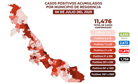 Xalapa, Ver., 04 de julio de 2020.- En seguimiento al panorama del coronavirus (COVID-19), la Secretaría de Salud (SS) informa que, al corte de las 19:00 horas, en la entidad han sido estudiados 20 mil 778 casos, de éstos, 6 mil 630 resultaron negativos.