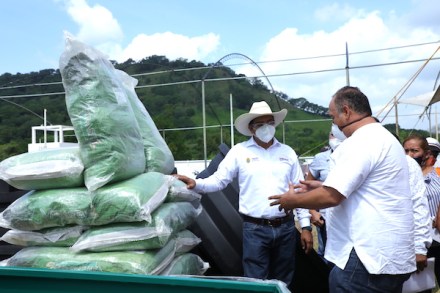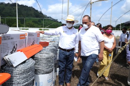 Al respecto, la Secretaría de Desarrollo Agropecuario, Rural y Pesca (SEDARPA), atendiendo las recomendaciones sanitarias, entregó apoyos de manera simbólica a 106 unidades productoras de ganado, 100 de café, 126 de cítricos, 100 de cacahuate, 125 de piloncillo artesanal y 100 de miel.