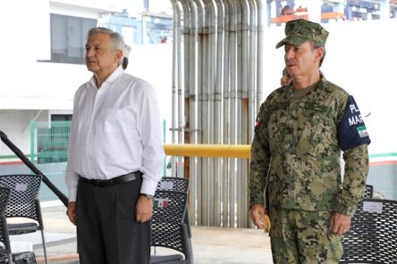 Manzanillo, Col., 17 de julio de 2020.- El presidente Andrés Manuel López Obrador anunció que la Secretaría de Marina regresará a litorales para desempeñar labores de seguridad y se incorporará a aduanas marítimas y puertos con el objetivo de erradicar el trasiego de sustancias ilegales y la corrupción.