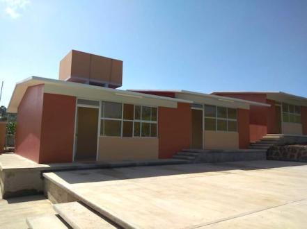 Se entregaron cuatro aulas didácticas, sanitarios, obra exterior, muros de contención, red de canaletas perimetrales, accesos, asta bandera, una dirección, una plaza cívica; así como trabajos de pintura e impermeabilización de un aula existente.