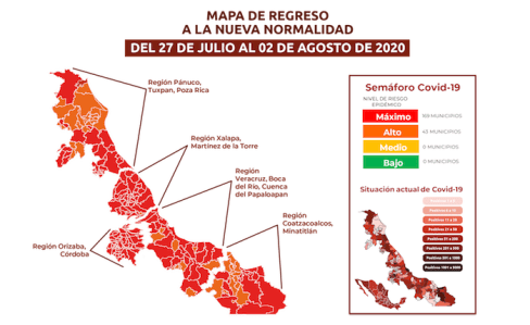 Para la semana del 27 de julio al 02 de agosto, el Semáforo Regional de Veracruz se mantiene de la siguiente manera: