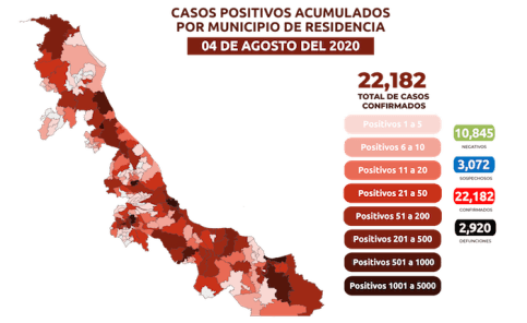 Al momento las ciudades de Veracruz, Coatzacoalcos, Córdoba, Xalapa, Poza Rica y Orizaba concentran el mayor número de casos positivos, por lo que sus habitantes deben estar conscientes de la situación y reforzar aún más las medidas preventivas.