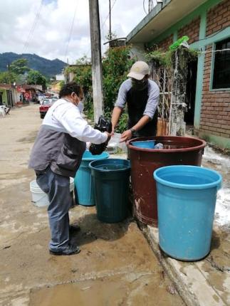 Al momento, en dichos municipios del Totonacapan la dependencia realizó la supervisión de un albergue, cloración de 60 mil litros agua, encalado de 100 viviendas, distribución de 300 envases con alcohol en gel y 200 de plata coloidal, 150 barras de jabón, 500 kilogramos de cal y 15 de hipoclorito de calcio, así como 75 pláticas de saneamiento básico y 75 de manejo de los alimentos, y muestras de Colilert que permitan obtener el recuento de bacterias en el agua.