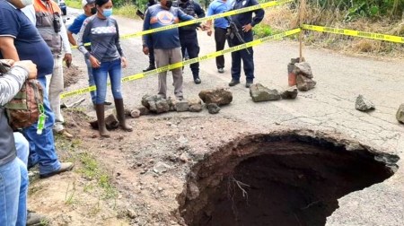 En Jilotepec se formó un socavón en el tramo carretero La Concepción- El Espinal, a la altura de la comunidad de San Martín, esto provocó el cierre de dicho tramo a la circulación.