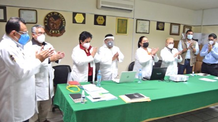 Veracruz, 27 de agosto de 2020.- Día con día, la Oficina de Representación Regional en Veracruz Norte, del Instituto Mexicano del Seguro Social (IMSS) se une al homenaje a los fallecidos por COVID-19 y al personal médico que atiende a las personas contagiadas, que se realiza simultáneamente en las Unidades Médicas y Administrativas.