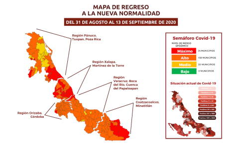 La Secretaría de Salud federal presentó este viernes el Semáforo de Riesgo Epidemiológico nacional, aplicable del lunes 31 de agosto al domingo 13 de septiembre, en donde Veracruz pasa a color amarillo (riesgo medio).