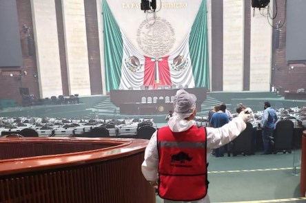 Las nuevas disposiciones incluyen el reacomodo de las curules en sana distancia, así como la instalación de acrílicos que separan cada curul y la esterilización de los espacios laborables del Palacio Legislativo de San Lázaro, incluido el Salón del Pleno.