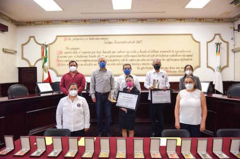 En sala Ex Presidentes, acompañado por el director de la institución, Daniel Domínguez Aguilar, y la alumna Iride Montezano López, representante de las y los galardonados, dijo que la emergencia sanitaria no es impedimento para que el Gobierno Municipal reconozca a quienes destacan en sus estudios.