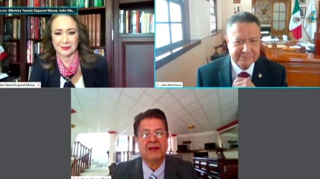 En su participación, Yazmín Esquivel Mossa, ministra de la Suprema Corte de Justicia de la Nación (SCJN), informó que, ante la emergencia sanitaria que provocó el Covid-19, la Corte emprendió acciones inmediatas, entre las que destaca el establecimiento de la nueva modalidad a distancia o virtual. “Ya estamos sesionando de manera digital, lo cual -indicó- no es sencillo”.