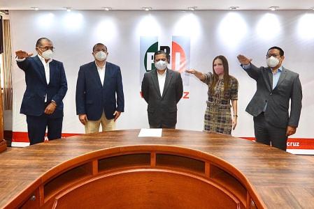 Xalapa, Ver., 11 de septiembre de 2020.- El presidente del CDE del PRI en Veracruz, Marlon Ramírez Marín, tomó protesta a Julio César Cerecedo Aguilar, Jeniffer del Ángel Rueda, y a David Cárdenas López, como vicepresidente de filiales, secretaria general y tesorero de Fundación Colosio Veracruz; organismo presidido por Renato Alarcón Guevara, quien entregó los nombramientos; estuvo presente, Edmundo Cristóbal Cruz dirigente estatal de Central Campesina Independiente (CCI).