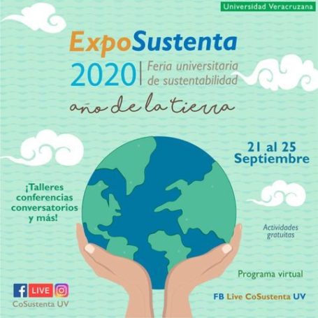 Xalapa, Ver., 20 de septiembre de 2020.- La Universidad Veracruzana (UV) realizará de manera virtual, del 21 al 25 se septiembre, la ExpoSustenta 2020 “Feria universitaria de sustentabilidad”, que tendrá por temática “Año de la Tierra” y por objetivo llamar a la reflexión sobre la vulnerabilidad del planeta, los estilos de vida y la urgente necesidad del cuidado propio y colectivo.