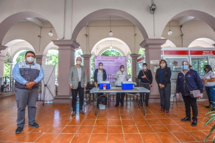 Xalapa, Ver., 01 de octubre de 2020.- Para evitar que la influenza estacional genere mayor ocupación hospitalaria durante la pandemia por el Coronavirus SARS-CoV-2, autoridades y funcionariado municipal exhortaron a la población a aplicarse la vacuna durante la campaña impulsada por la Secretaría de Salud de Veracruz.