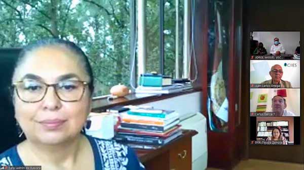 Sara Ladrón de Guevara, rectora de la UV, encabezó el martes 13 de octubre la reunión virtual en la que se compartieron experiencias y analizaron de manera conjunta los resultados de esta evaluación desarrollada y diseñada por académicos e investigadores del CIIES, a quienes reconoció su iniciativa y esfuerzo. Se trata de Ragueb Chaín Revuelta, Juan Carlos Ortega Guerrero, Joyce García Gálvez, Carlos García Trujillo, Alberto Ramírez Martinell y Jahir Castillo Ochoa.