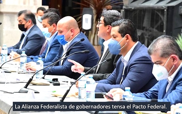 El lunes, los gobernadores de Aguascalientes, Chihuahua, Coahuila, Colima, Durango, Guanajuato, Jalisco, Michoacán, Nuevo León y Tamaulipas, agrupados en la Alianza Federalista, que se desprendió de la Confederación Nacional de Gobernadores (Conago), reclamaron de la Federación mayor presupuesto para necesidades estatales “y no solo para satisfacer la agenda presidencial”.