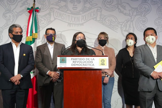 En conferencia de prensa presencial, la coordinadora de las y los diputados del PRD, Verónica Juárez Piña, expresó su rechazo a dichas presiones y amenazas, al tiempo que manifestó el respaldo y acompañamiento de su Grupo Parlamentario a las acciones legales y políticas que emprendan los presidentes municipales.