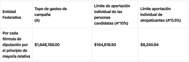 La Consejera Favela abundó que el límite de aportaciones individuales que podrán realizar las personas que contienden en candidaturas independientes y simpatizantes será el resultado de restarle al tope de gastos de campaña que les corresponda y serán los siguientes: