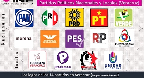 Se trata de 10 partidos con registro nacional y cuatro solo con registro local: Partido Acción Nacional (PAN), Partido Revolucionario Institucional (PRI), Partido de la Revolución Democrática (PRD), Partido del Trabajo (PT), Partido Verde Ecologista de México (PVEM); Movimiento Ciudadano (MC), Partido Encuentro Solidario (PES), Fuerza Social por México (FSM), Redes Sociales Progresistas (RSP) y Movimiento Regeneración Nacional (MORENA), y los cuatro nuevos partidos políticos locales: Podemos, Unidad Ciudadana, Bienestar y Justicia Social y Todos por Veracruz. ¡Uf!