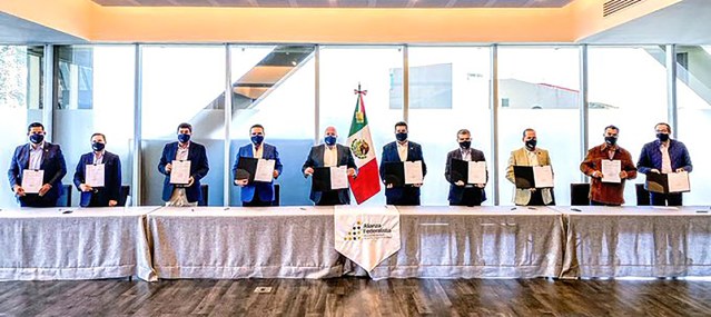 Guadalajara, Jal., 20 de noviembre de 2020.- La Alianza Federalista, formada por los gobernadores de Aguascalientes, Coahuila, Colima, Chihuahua, Durango, Guanajuato, Jalisco, Michoacán, Tamaulipas y Nuevo León firmaron la controversia constitucional contra la desaparición de los fideicomisos que presentarán la próxima semana ante la Suprema Corte de Justicia de la Nación.