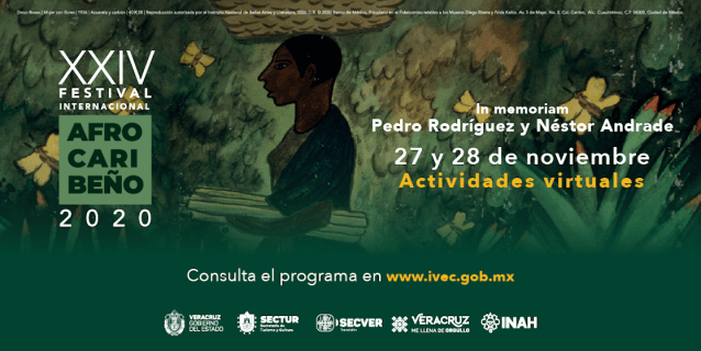 Xalapa, Ver., 25 de noviembre de 2020.- El Instituto Veracruzano de la Cultura (IVEC) llevará a cabo la XXIV edición del Festival Internacional Afrocaribeño los días 27 y 28 de noviembre, en modalidad virtual. Estará dedicado a la memoria de Pedro Rodríguez y Néstor Andrade, entrañables colaboradores del IVEC que fallecieron recientemente. El programa contempla un foro académico, una muestra cinematográfica, una exposición virtual, talleres y un foro artístico.