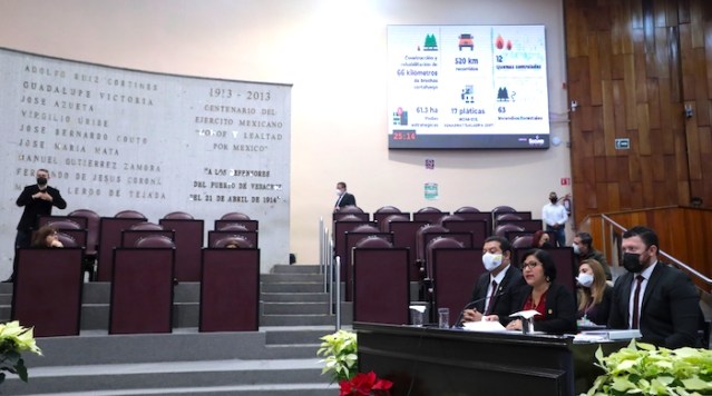Xalapa, Ver., 04 de diciembre de 2020.- Con la suma de esfuerzos, trabajo honesto y austeridad avanzamos en el cumplimiento del objetivo de garantizar a los veracruzanos su desarrollo en un ambiente sano, expresó la titular de la Secretaría de Medio Ambiente (SEDEMA), María del Rocío Pérez Pérez, durante su comparecencia ante la Comisión Permanente de Medio Ambiente, Recursos Naturales y Cambio Climático de la LXV Legislatura.