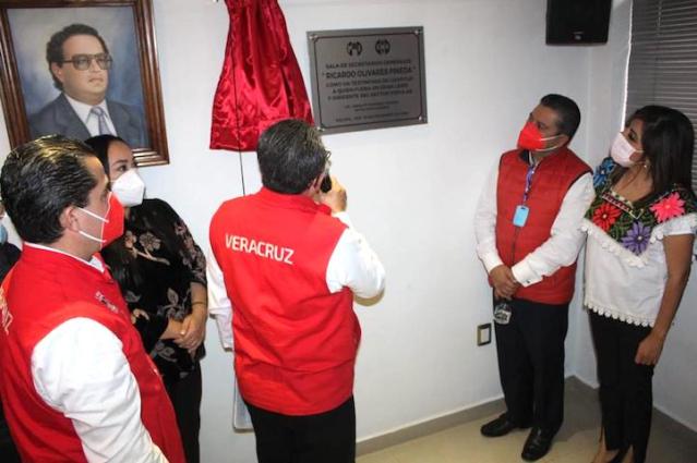 Durante el homenaje, fue develada una placa en la que queda establecido que la sala ex secretarios generales de la CNOP en Veracruz, llevará el nombre de Ricardo Olivares Pineda.