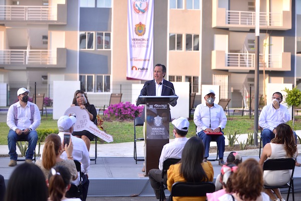 Lo anterior fue expresado por el gobernador Cuitláhuac García Jiménez durante la entrega de los primeros 30 departamentos, de 96, que oferta el Proyecto Piloto de Inversión Financiera para Vivienda, a través de la Secretaría de Educación (SEV) y el Instituto Veracruzano de la Vivienda; esta ocasión en la localidad Mata Cocuite, de este municipio.