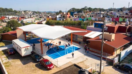 “Este domo permite dotar de equipamientos educativos de calidad a las y los estudiantes para el desarrollo de actividades deportivas y cívicas, además de que cuenta con un sistema de captación de agua de lluvia, que es muy importante en la actualidad”.