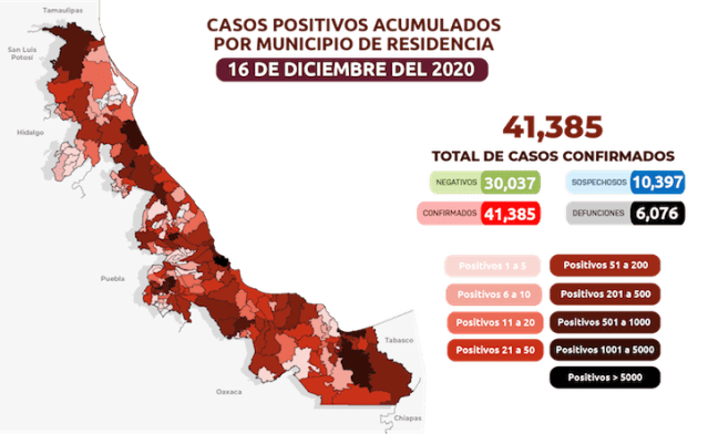 Xalapa, Ver., 16 de diciembre de 2020.- En seguimiento al panorama del coronavirus (COVID-19), la Secretaría de Salud (SS) informa que, al corte de las 19:00 horas, en la entidad han sido estudiados 81 mil 819 casos, de los cuales 30 mil 037 resultaron negativos.