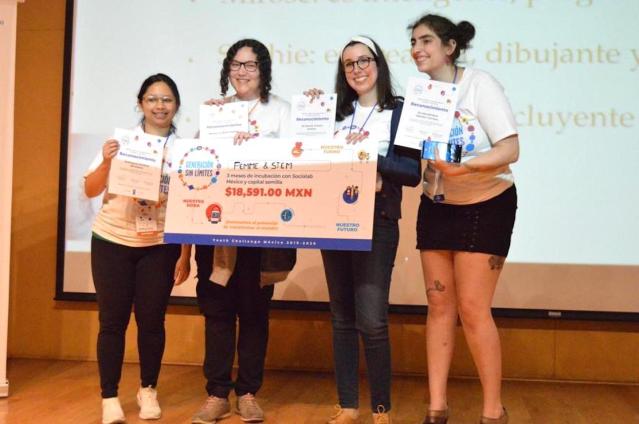 Ciudad de México, 19 de diciembre de 2020.- El Fondo de las Naciones Unidas para la Infancia (UNICEF), México, reconoció al equipo de Femme & Stem, conformado por jóvenes mexicanas, quienes triunfaron en el Generation Unlimeted. Youth Challenge!, con el proyecto Erandi Aprende, con el que buscan que niñas y niños se interesen más por los temas de ciencia y tecnología, para cerrar así la brecha de género en estas áreas.