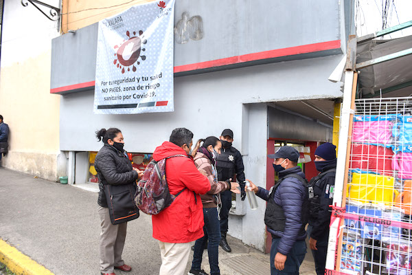 Xalapa, Ver., 27 de diciembre de 2020.- Debido a la intensa actividad comercial en distintas calles del Centro por las compras de la temporada, y para disminuir la propagación del coronavirus SARS-Cov-2, que provoca la enfermedad Covid-19, el Gobierno Municipal mantendrá el Cerco Sanitario establecido en la calle Victoria, entre Clavijero y Revolución, en cuya operación participa funcionariado de diversas dependencias.