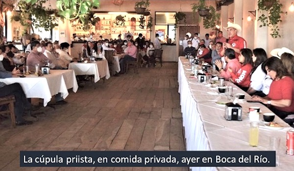 Nombres, figuras, José Murat, padre del gobernador de Oaxaca; el dirigente nacional ¡de la Coparmex!, Enoc Castellanos (originario de Coatzacoalcos, pero radicado en el puerto jarocho); el diputado federal Contralmirante de la Marina, Juan Ortiz Guarneros; Beatriz Paredes; el diputado federal Héctor Yunes Landa, Marlon Ramírez, por supuesto… Por cierto, a la comida no permitieron el ingreso con teléfonos celulares.