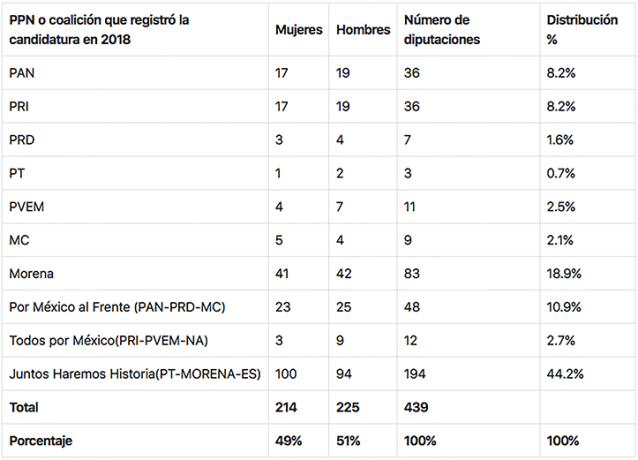 Vencido el plazo, 439 diputadas y diputados presentaron su manifestación de intención para reelegirse en el cargo, de las cuales el 49 por ciento, es decir 214 son mujeres y el 51 por ciento restante son hombres (225).