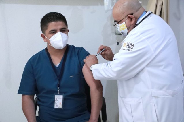 - El médico internista Cándido Contreras Méndez, del CAE Xalapa, fue el primero en recibir la inmunización.