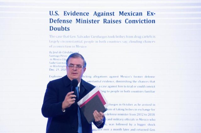 “Transparencia plena. (…) La Fiscalía ha actuado porque se consideró que los elementos de prueba presentados por la agencia que se conoce por sus siglas como DEA, no tienen ningún valor probatorio para procesar, para iniciar un juicio contra el general Cienfuegos”, añadió.
