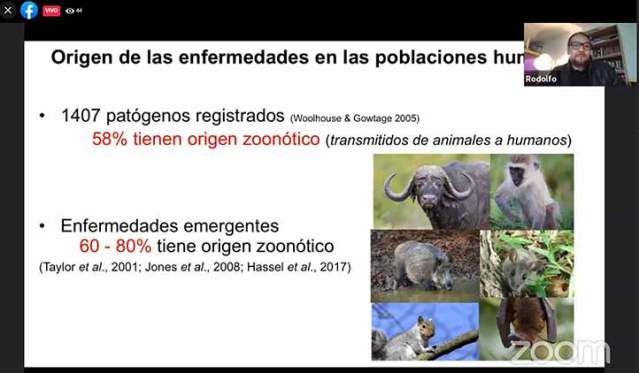 Comentó que una gran proporción de las enfermedades infecciosas que afectan a las poblaciones humanas tienen un origen zoonótico, es decir, son transmitidas de animales a humanos.