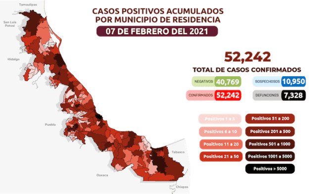 Xalapa, Ver., 07 de febrero de 2021.- En seguimiento al panorama del coronavirus (COVID-19), la Secretaría de Salud (SS) informa en su emisión 315 que, al corte de las 19:00 horas, en la entidad han sido estudiados 103 mil 961 casos, de los cuales 40 mil 769 resultaron negativos.