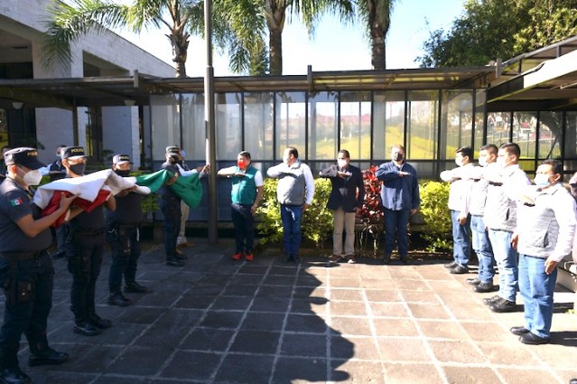 Después del izamiento del lábaro patrio, a cargo de elementos de Seguridad Pública, el Contralor Interno, René Buenrostro Hernández, señaló que, a 200 años de la firma del Plan de Iguala, que declaraba a México como un país soberano e independiente, es imperativo que cada ciudadano y servidor público refrende su compromiso con la Patria.
