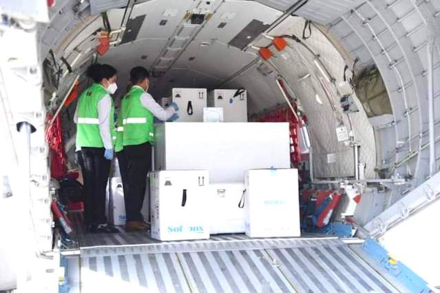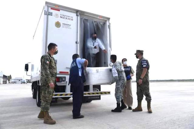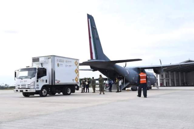 El lote de vacunas llegó esta mañana a la Base Aérea Naval Las Bajadas de Veracruz, y se contó con el apoyo de la Fuerza Aérea Mexicana para el traslado de las mismas.