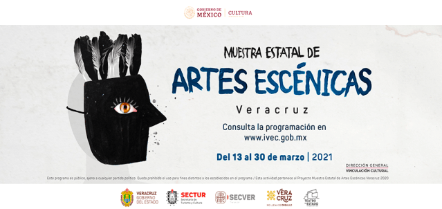 Xalapa, Ver., 09 de marzo de 2021.- El Instituto Veracruzano de la Cultura, en coordinación con la Secretaría de Cultura federal, presenta la Muestra Estatal de Artes Escénicas Veracruz (MEAEV), que tendrá lugar del 13 al 30 de marzo de 2021. El programa, conformado por presentaciones escénicas y talleres, es un espacio que fomenta el diálogo y el aprendizaje entre los artistas y creadores escénicos de Veracruz.